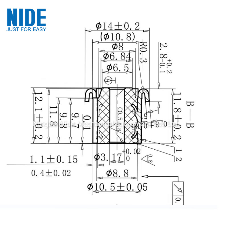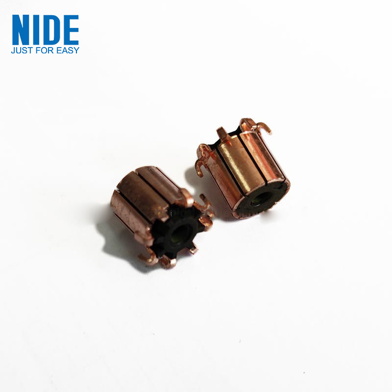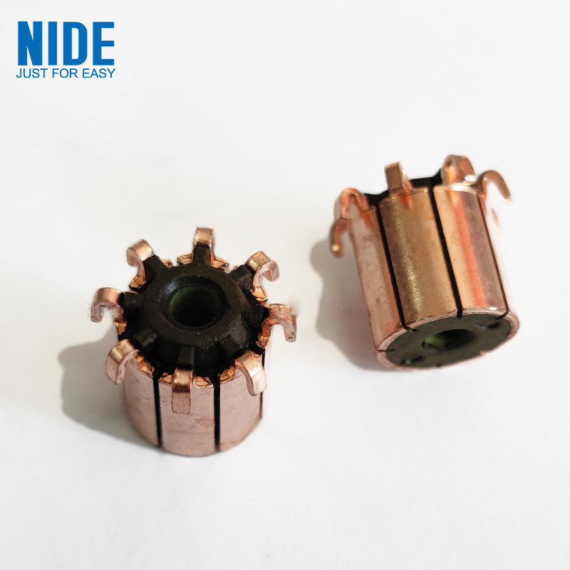 Il-kommutatur Hook għall-mutur DC huwa ddisinjat apposta 8 ganċijiet b'dijametru ta '8.1 mm, 10 mm twil b'toqba ta' 3.1 mm. Commutator jadotta teknoloġija tat-tip qoxra u majka ta 'l-arja undercut. Il-commutatoIl-kollettur r juża 0.08% materjali tar-ram tal-fidda b'ebusija 'l fuq minn 95 HB u bars b'saħħa minima tat-tensjoni ta' 50N. Huwa ggarantit f'termini ta 'surdiness, affidabilità u durabilità.